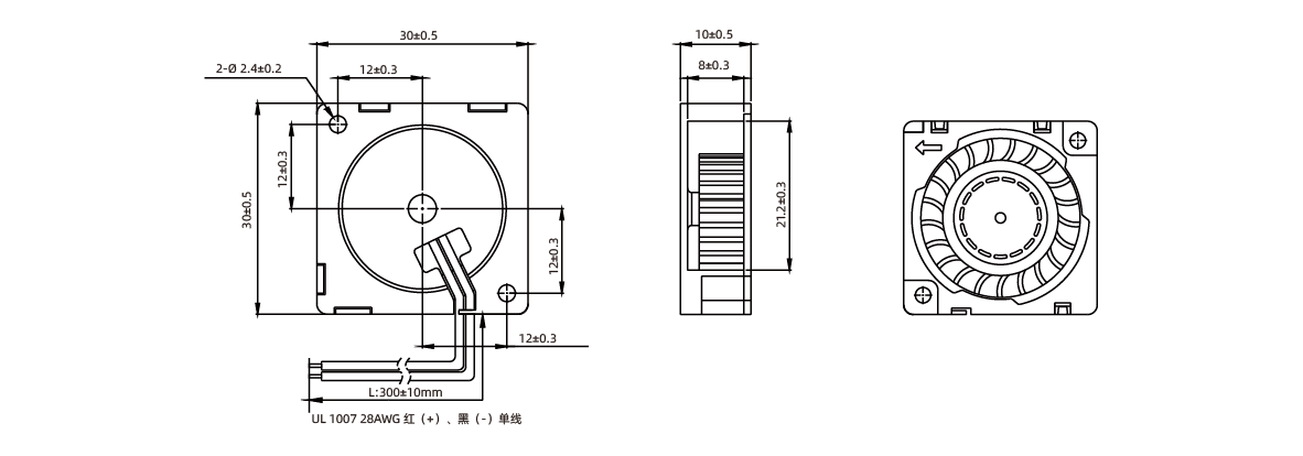 The 30x30x10mm DC brushless blower fan is a compact and efficient cooling solution designed for electronic devices with limited space. It provides high-performance airflow and quiet operation, making it ideal for applications such as 3D printers, computer components, and other small electronic devices. The fan features a long-lasting dual ball bearing system, ensuring reliable operation even under harsh conditions. With a rated voltage of 12V and a maximum speed of over 10,000 RPM, it delivers excellent cooling efficiency while maintaining minimal noise, making it the perfect choice for keeping equipment at optimal temperatures.